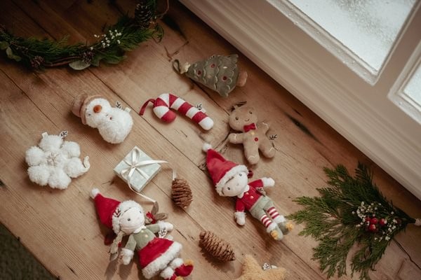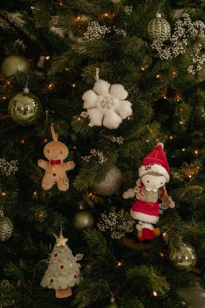 Haz más festivo tu árbol de Navidad con estos bonitos colgantes para el árbol. El set consiste 4 decoraciones blanditas. Rosa muñeca blandita, una galleta de jengibre, un árbol de Navidad y un copo de nieve. Perfecto para llevar una atmosfera cálida a tu hogar. Los colgantes son ligeros y seguros para las pequeñas manos.