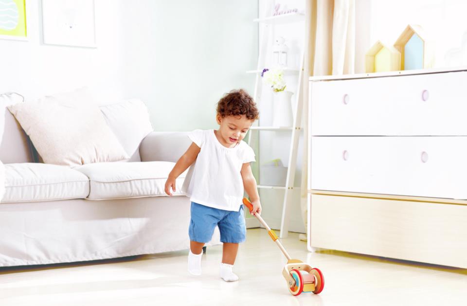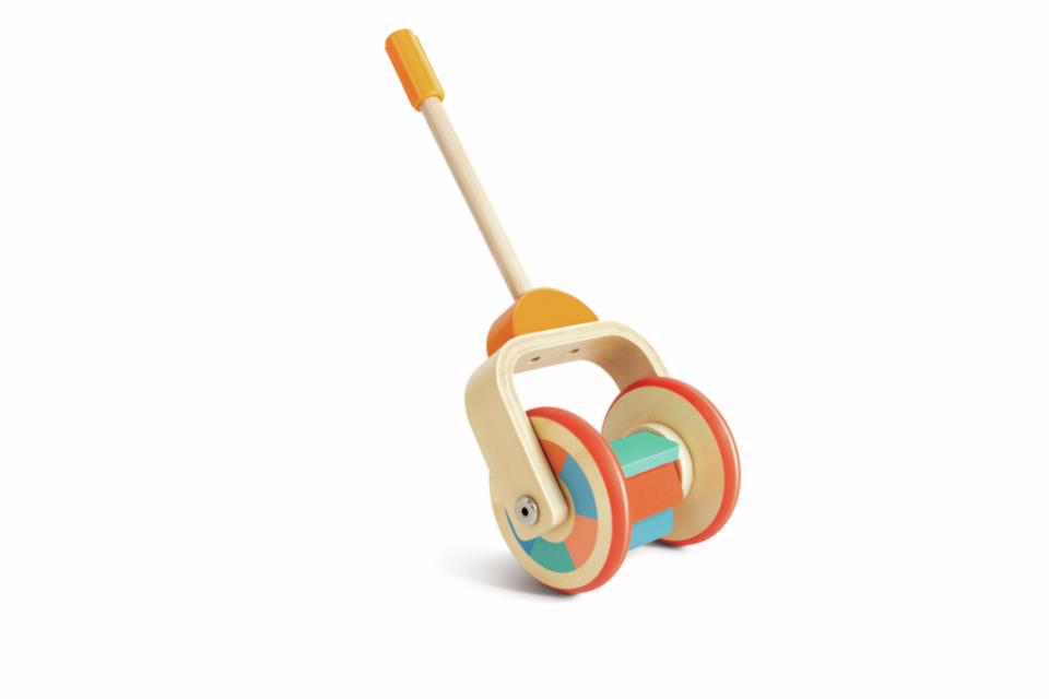 Un suave empujón o tirón anima a correr con los pies y a girar el arco iris de colores.
