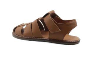 SANDALIA BLANDITOS fabricada en PIEL, de concepto BAREFOOT, CERO DROP y la suela de goma MUY FLEXIBLE. Acabada en color cuero, el CIERRE ES DE VELCRO, la puntera cerrada y el talón al descubierto.