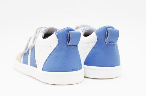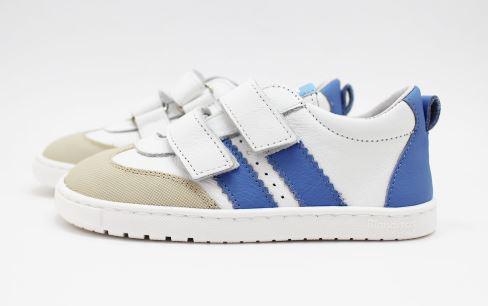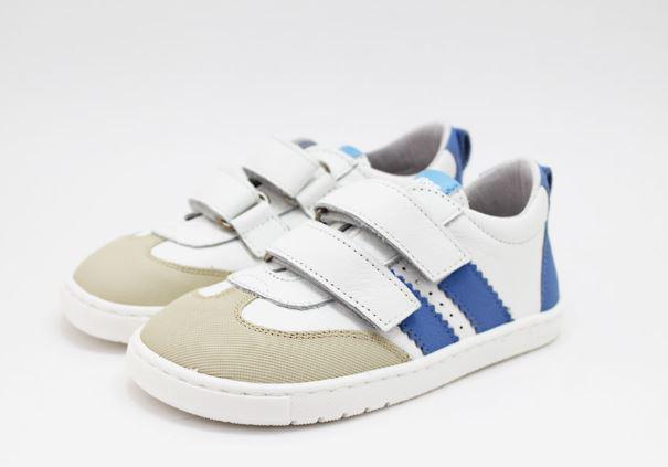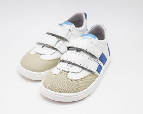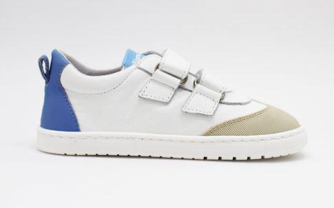 Deportivos MAREA, en color blanco azulón, de la marca Blanditos by Crios. Deportivos respetuosos pensados para cuidar los pies durante su desarrollo y mantenerlos sanos.