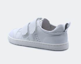 Este modelo de calzado deportivo respetuoso está fabricado en CUERO en la parte superior y en la parte interior, el cierre está compuesto de DOS VELCROS también en blanco que facilita la colocación y la autonomía de los más pequeños.