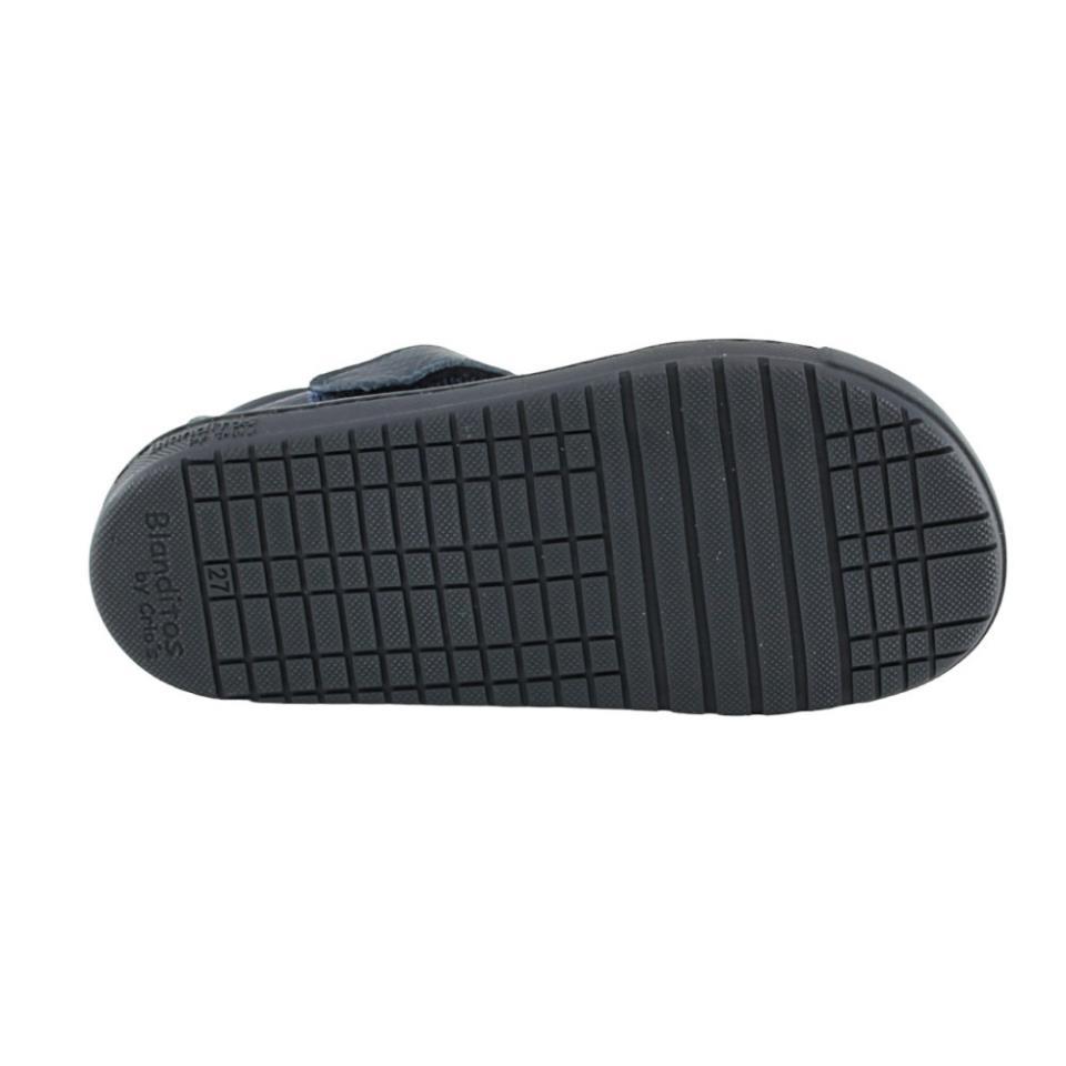 Merceditas de la marca Blanditos, modelo Hadas de color azúl oscuro. Estas colegiales son respetuosas con el crecimiento y desarrollo de los pies. Se ajustan al pie gracias a su cierre con velcro. Su plantilla de goma es amplia y flexbile.