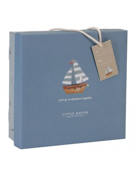 Caja regalo ideal para bebé de la colección Sailors Bay de la marca Little Dutch. Contiene un doudou, un peluche de gaviota y un anillo de dentición.