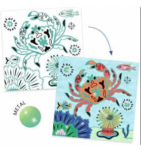 Manualidad que realiza para pintar laminas con efecto metal. El tema de esta manualidad son los animales en el mar.