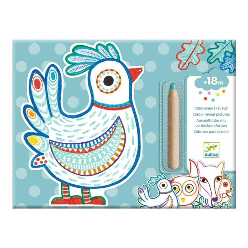 Un conjunto de 12 imágenes para colorear con un lápiz grande de colores adaptado para los más pequeños. Para descubrir lo que se oculta, solo deberá colorear los animales del bosque con el lápiz. Como por arte de magia, el lápiz solo pintará algunas zonas y, los motivos que irán apareciendo, desvelarán grandes sorpresas.