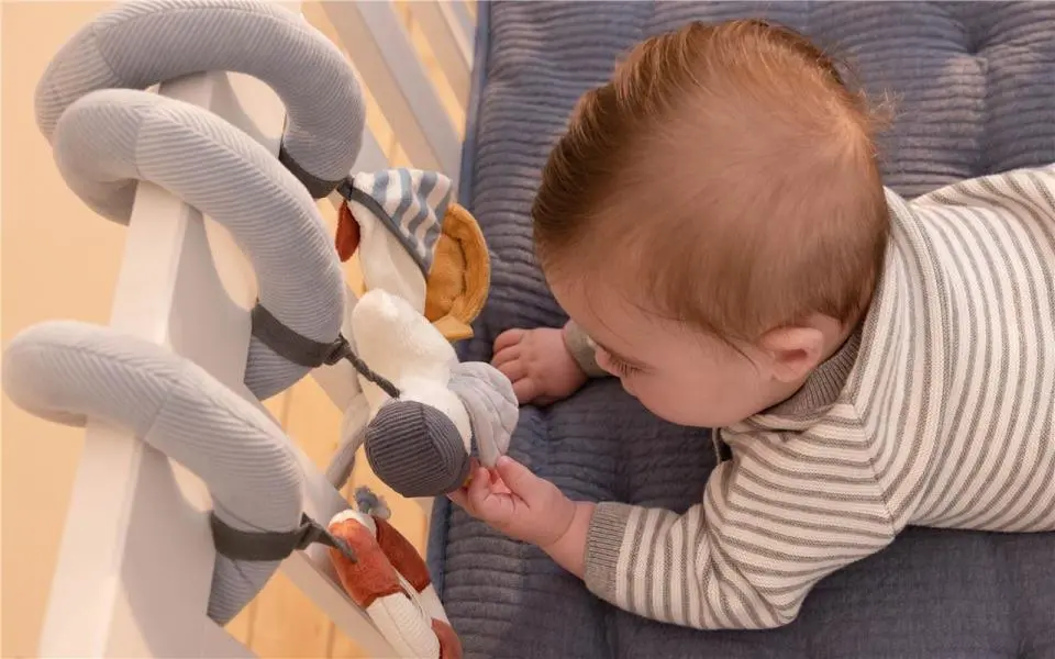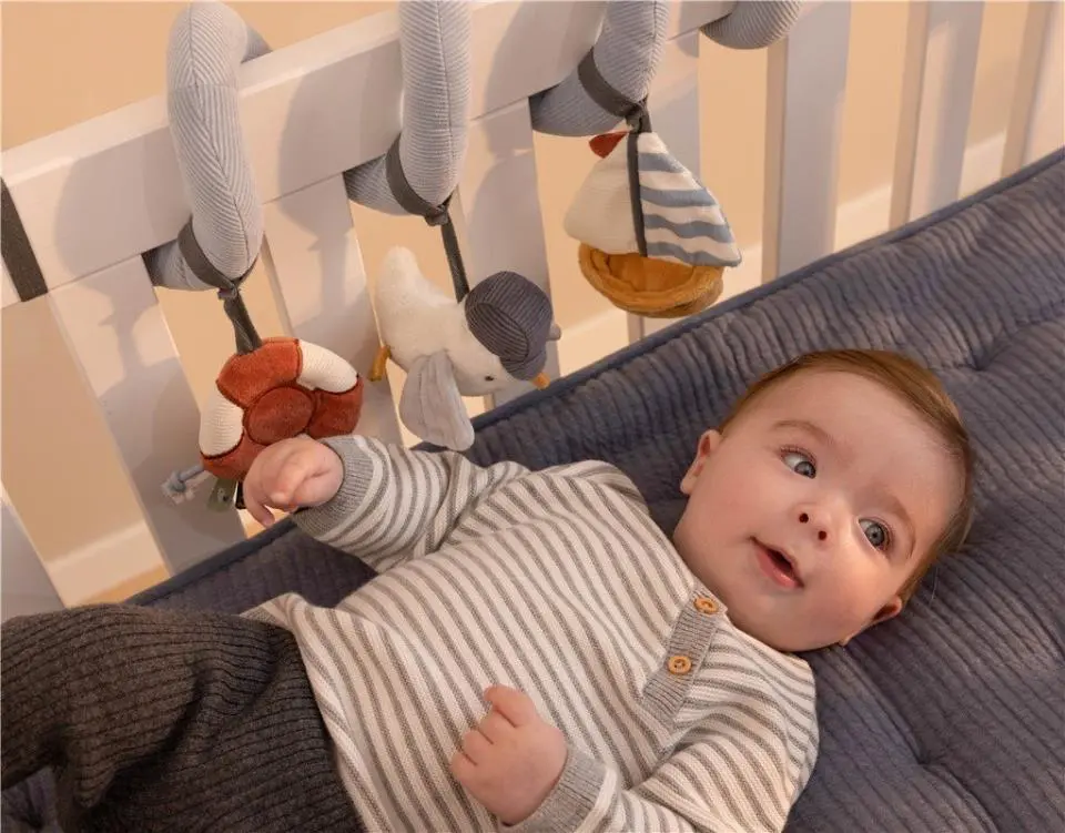 Haz de cada día una aventura en la bahía para los más pequeños con esta tentadora espiral de actividades. Estimula la coordinación mano-ojo del bebé y lo convierte en horas de entretenimiento. Confeccionado en algodón y pana