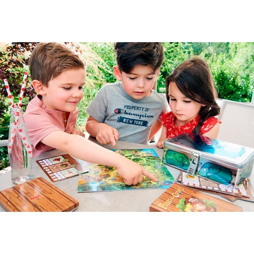 Fantástico juego de enigmas que se deben resolver para avanzar con la figurita el número correcto de casillas del mapa del tesoro y conseguir el código del candado que abre el cofre del tesoro. Con diferentes grados de dificultad y temática de piratas. El cofre se puede llenar de los tesoros que queramos.