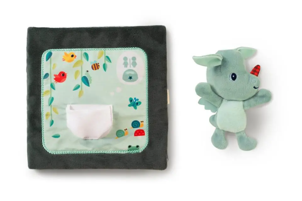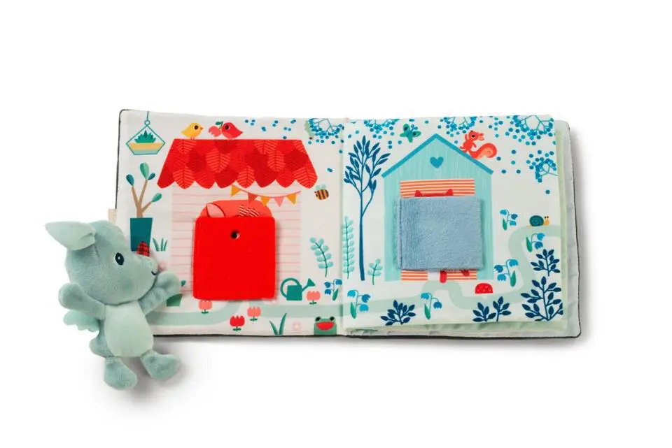 Libro de aprendizaje Joe Toc toc en tela, un libro para bebés de la marca Lilliputiens.