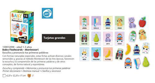 EDAD 1-3 AÑOS. CON LAS FORMAS ENCAJABLES ESPECIALES, ESTAS FLASH CARDS ACTIVAN VARIOS CANALES SENSORIALES Y, GRACIAS AL METODO MONTESSORI DE LOS TRES TIEMPOS, FAVORECEN LA ESCUCHA Y LA COMPRENSION DE LAS PRIMERAS PALABRAS Y DE OTROS CONCEPTOS, DE FORMA NATURAL Y ESPONTANEA.
