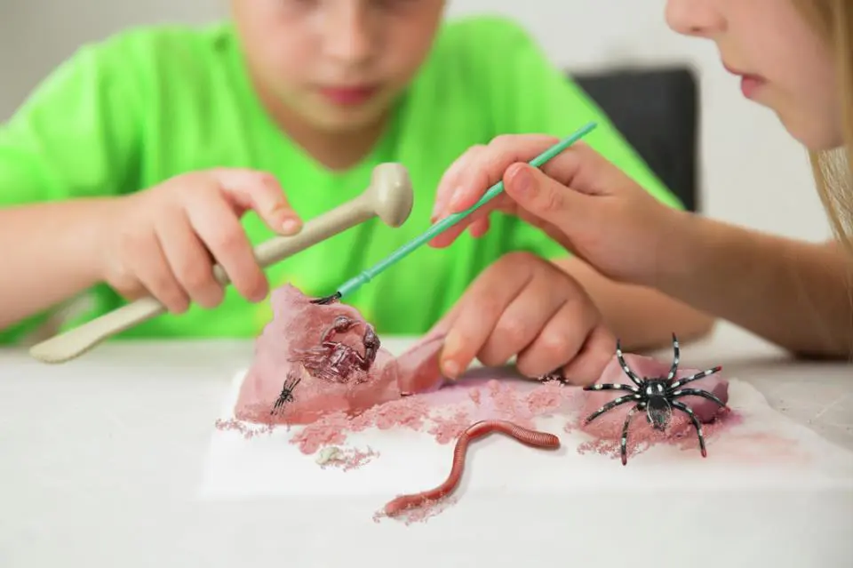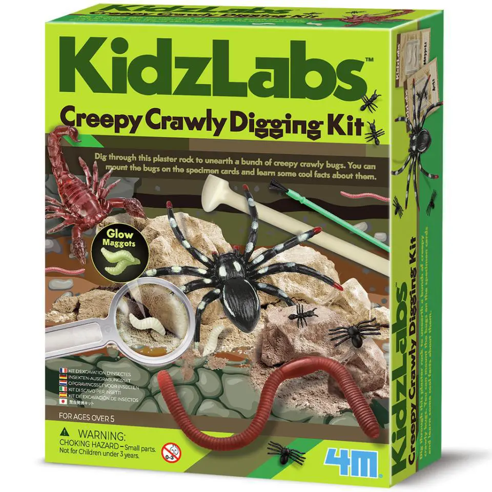 Excava a través de esta roca de yeso para desenterrar un montón de bichos espeluznantes. Puedes montar los bichos en las tarjetas de especímenes y aprender algunos datos interesantes sobre ellos.