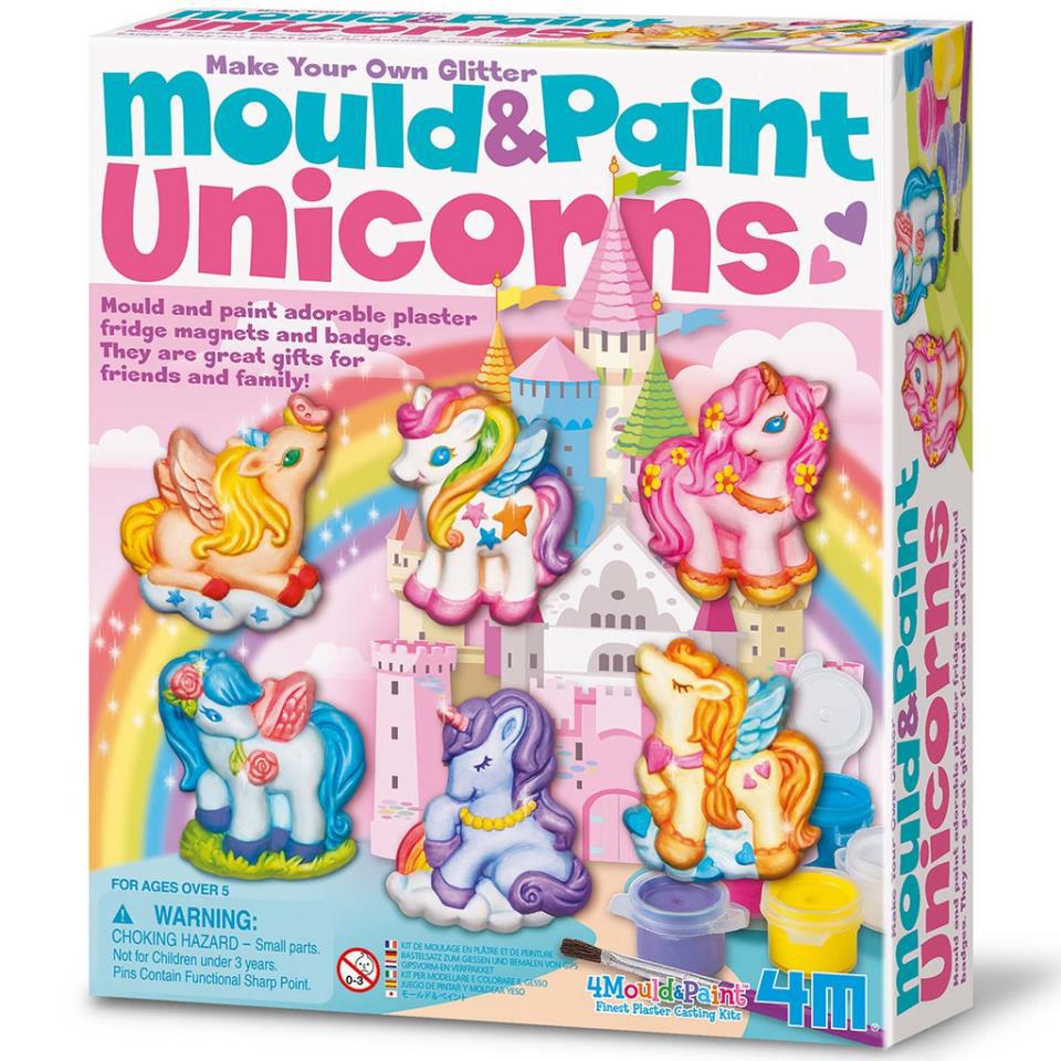 Un bonito kit de manualidades para moldear hasta 6 unicornios diferentes. Píntalos con los colores que prefieras y hazlos brillar con un toque de purpurina. Una vez acabados, podrás convertirlos en divertidos imanes para la nevera, en pins para la mochila o simplemente, en figuras para decorar o regalar a tus amigos. Será una manualidad fácil y divertida, que sacará toda la creatividad que llevas dentro.