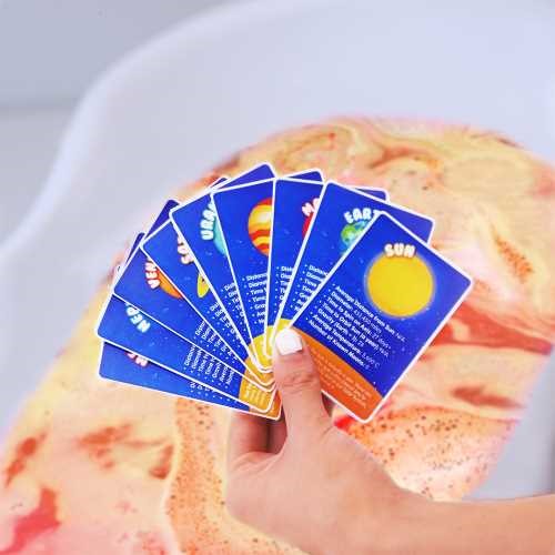 Estas bombas de baño añaden un toque educativo a la hora del baño, ya que enseñan a los niños y niñas todo sobre nuestros planetas y el sol.