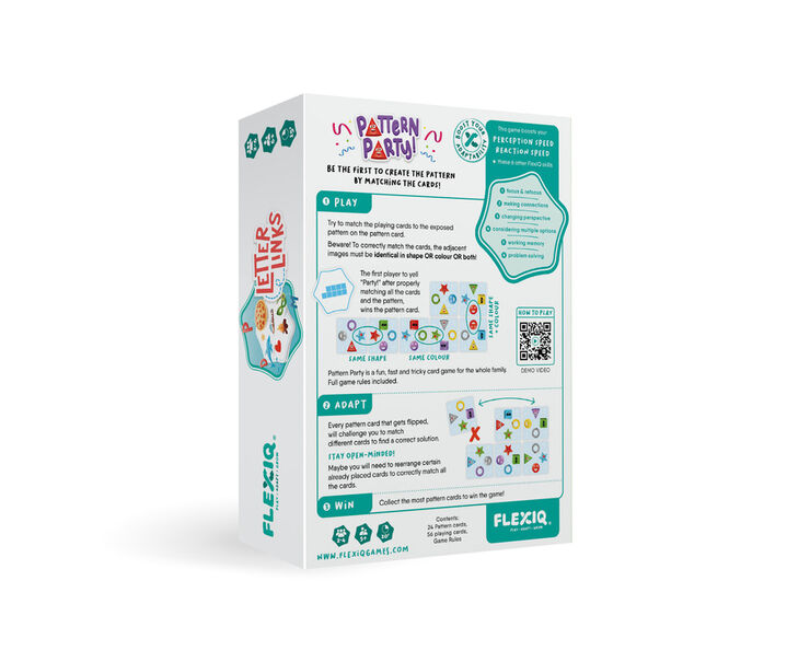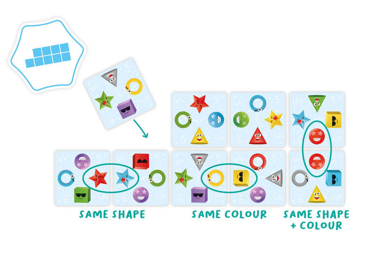 uego de relacionar en el que todos los jugadores/as al mismo tiempo deben reproducir el patrón indicada con sus cartas de juego. Para ello, el objeto o el color de las cartas de juego contiguas deben ser el mismo. Gana quien consiga más cartas de patrón. Distintos grados de dificultad.