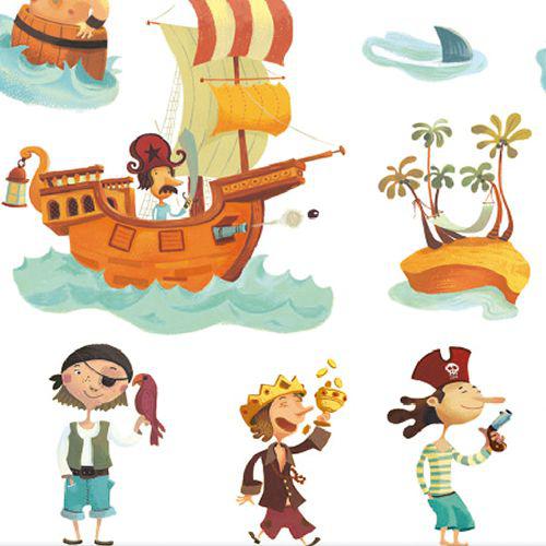 Además, son perfectas para el desarrollo de la imaginación ya que se pueden utilizar para contar historias de piratas si se pegan siguiendo un orden y una secuencia lógica.