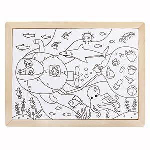 Sumérgete en aguas desconocidas con este puzle de 48 piezas. Verás cómo limpian el fondo del mar en un submarino y también un narval, un calamar gigante ¡e incluso un montón de jaleas rosas! También hay un dibujo en blanco por detrás para que puedas colorear tu propio puzle.Este puzle viene con una bandeja de madera y un póster de consulta.