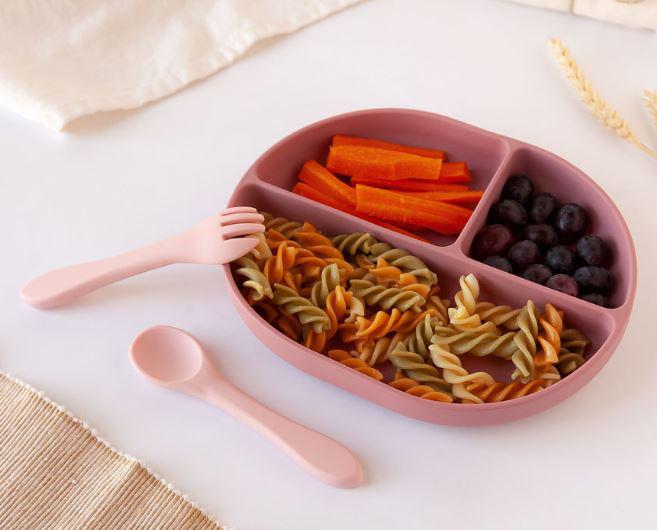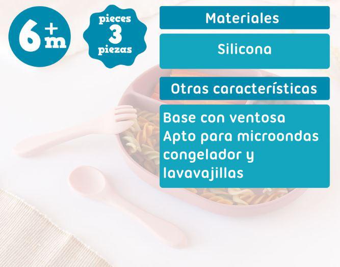 Esta bandeja con 3 compartimentos está diseñada para promover una experiencia de alimentación divertida y educativa para los bebés.