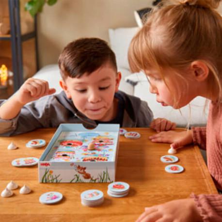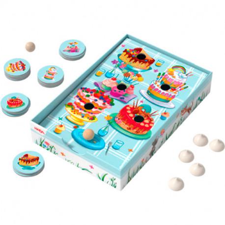 Soplar el Pastel: Coloca la Guinda es un divertido juego de mesa infantil que favorece la motricidad de los labios y de la boca y, con ello, el desarrollo del habla.