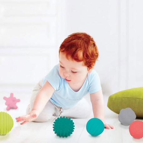 Todas las bolas estimulan el sentido del tacto, la destreza y la coordinación de los movimientos del bebé.