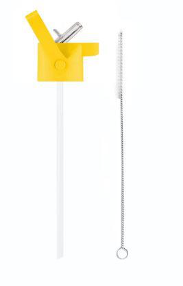 La caja contiene: 1 tapón con asa y pajita abatibles, 1 cepillo limpiador, 1 pajita tamaño 260 ml., 1 pajita tamaño 350 ml. y 1 pajita tamaño 500 ml.