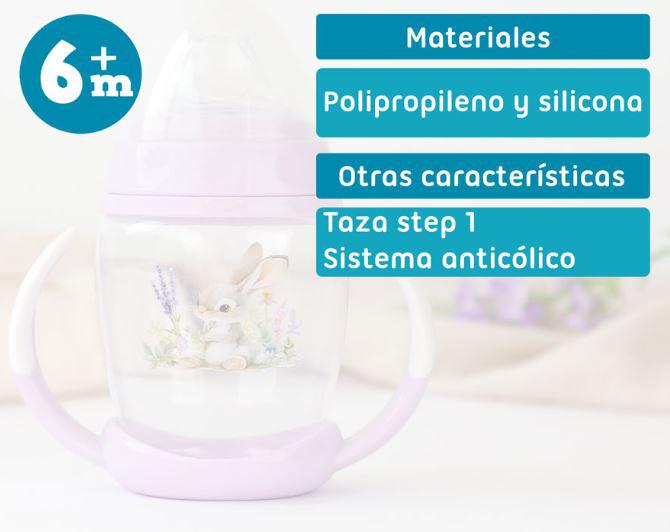 Nuestras tazas de aprendizaje son la mejor ayuda para empezar la transición del biberón al vaso. Con ella, tu bebé aprenderá a beber solito. Es ligera y fácil de coger, gracias a sus asas en los laterales y su boquilla está diseñada para que le sea más fácil beber y no derrame líquido.