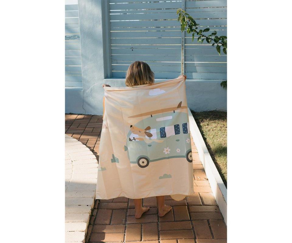 Toalla de microfibra ligera, compacta y de secado rápido, de la Colección Surf Van. Viene con una funda de malla transpirable para que la puedas llevar a cualquier parte cómodamente.